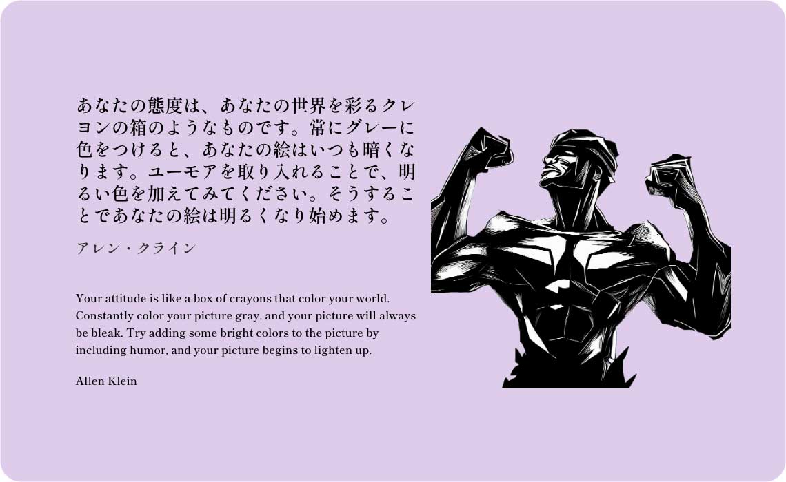 Your attitude is like a box of crayons that color your world. Constantly color your picture gray, and your picture will always be bleak. Try adding some bright colors to the picture by including humor, and your picture begins to lighten up.