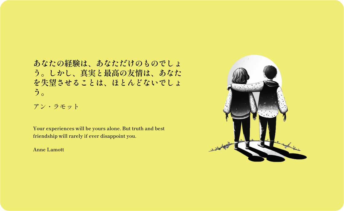 Your experiences will be yours alone. But truth and best friendship will rarely if ever disappoint you.