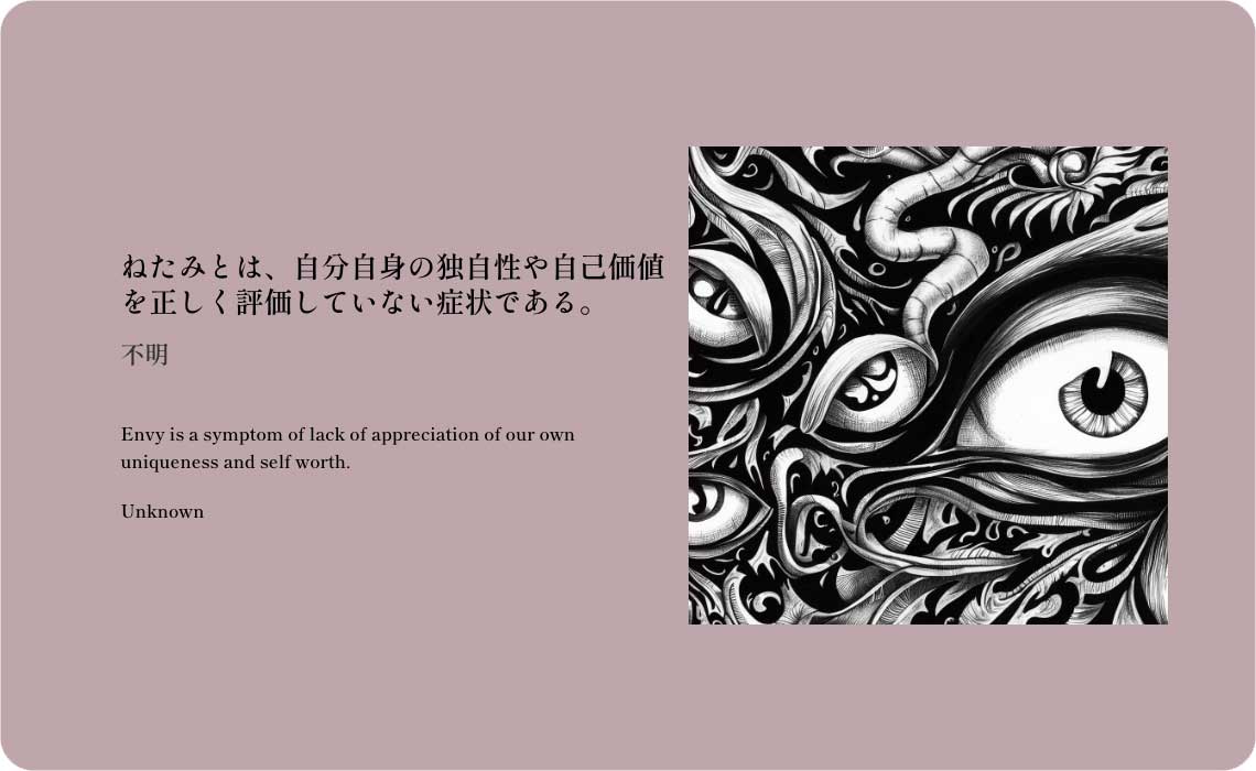 ねたみとは、自分の持つ幸福を数えることではなく、他人が持つ幸福を数える芸術である。