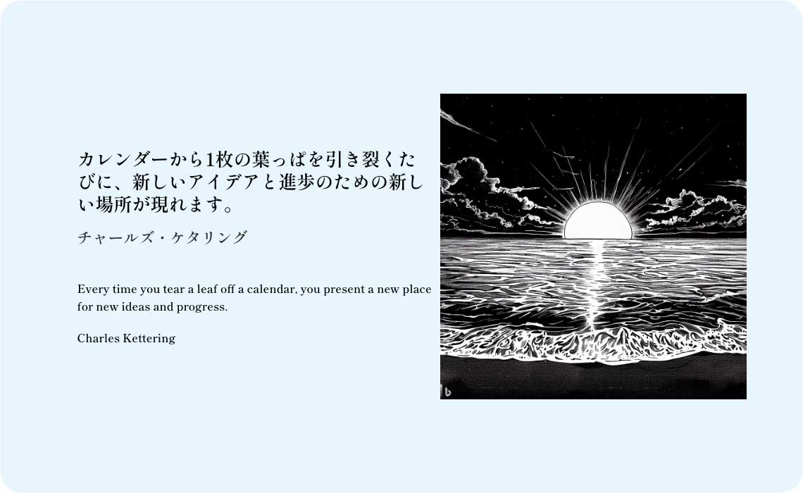 カレンダーから1枚の葉っぱを引き裂くたびに、新しいアイデアと進歩のための新しい場所が現れます。