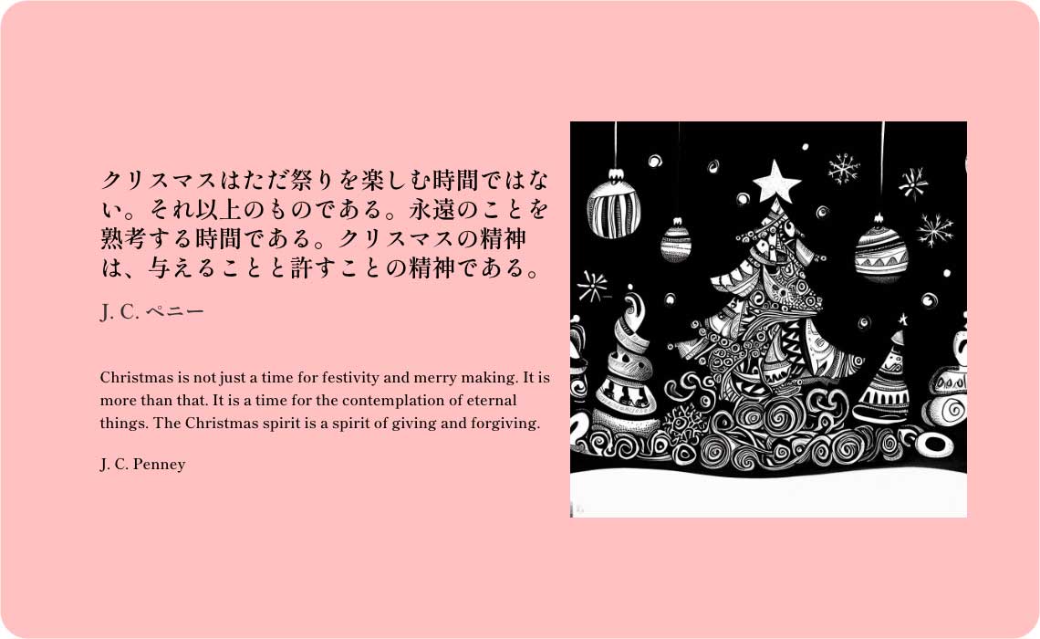 クリスマスはただ祭りを楽しむ時間ではない。それ以上のものである。永遠のことを熟考する時間である。クリスマスの精神は、与えることと許すことの精神である。