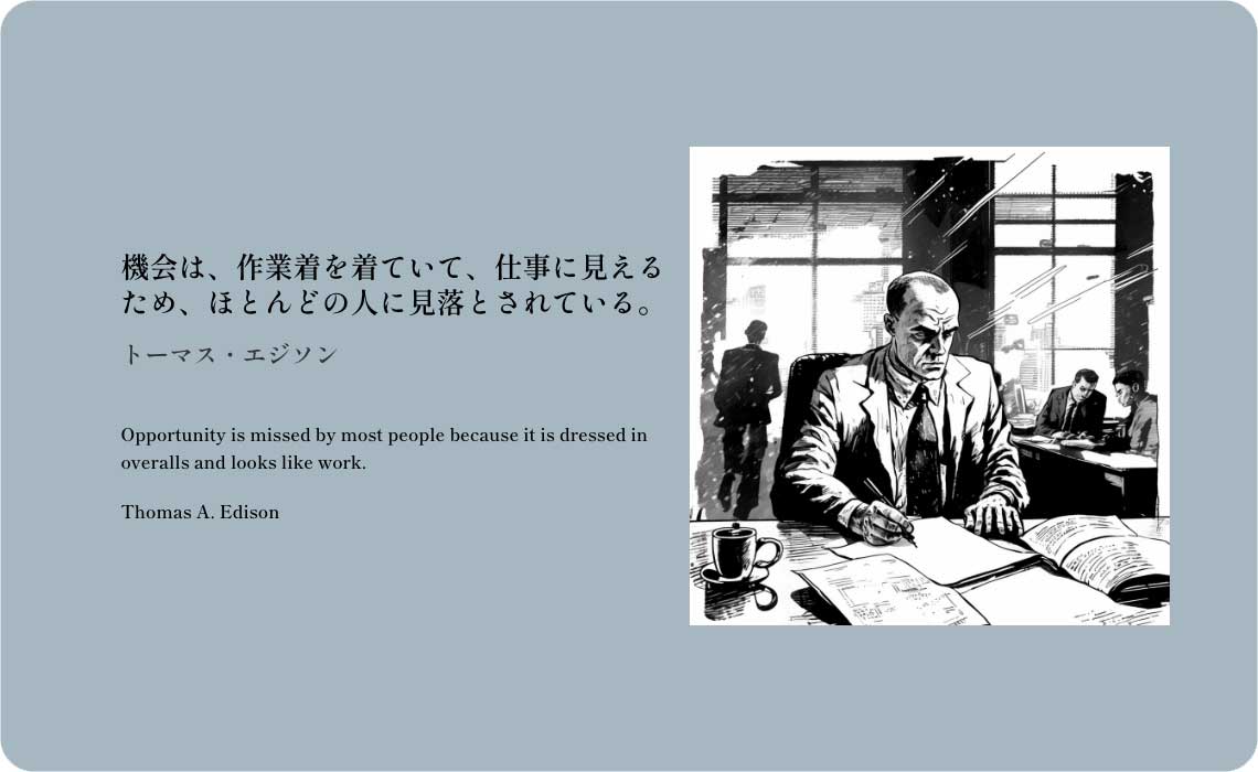 チャンスは大半の人にとって見逃される。それはオーバーオールを着て労働に見えるからだ。