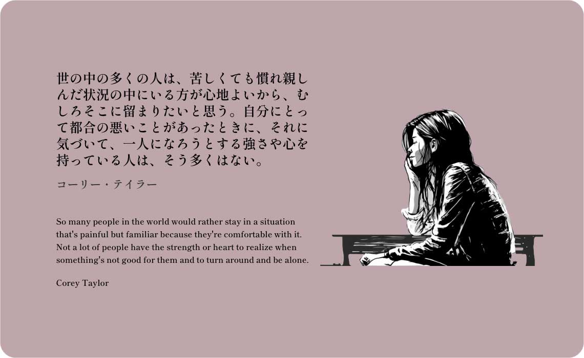 So many people in the world would rather stay in a situation that's painful but familiar because they're comfortable with it. Not a lot of people have the strength or heart to realize when something's not good for them and to turn around and be alone.