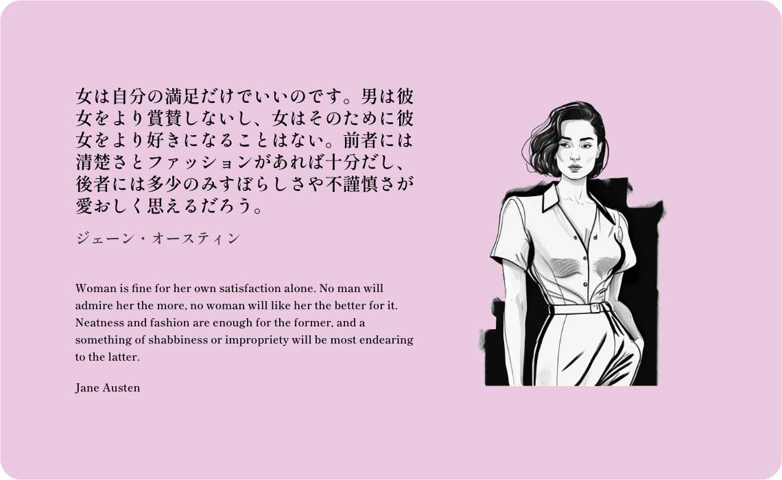 Woman is fine for her own satisfaction alone. No man will admire her the more, no woman will like her the better for it. Neatness and fashion are enough for the former, and a something of shabbiness or impropriety will be most endearing to the latter.