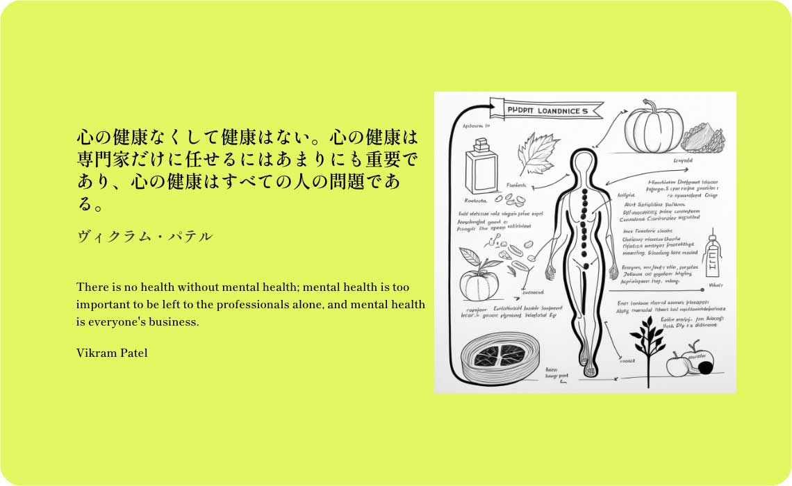 There is no health without mental health; mental health is too important to be left to the professionals alone, and mental health is everyone's business.