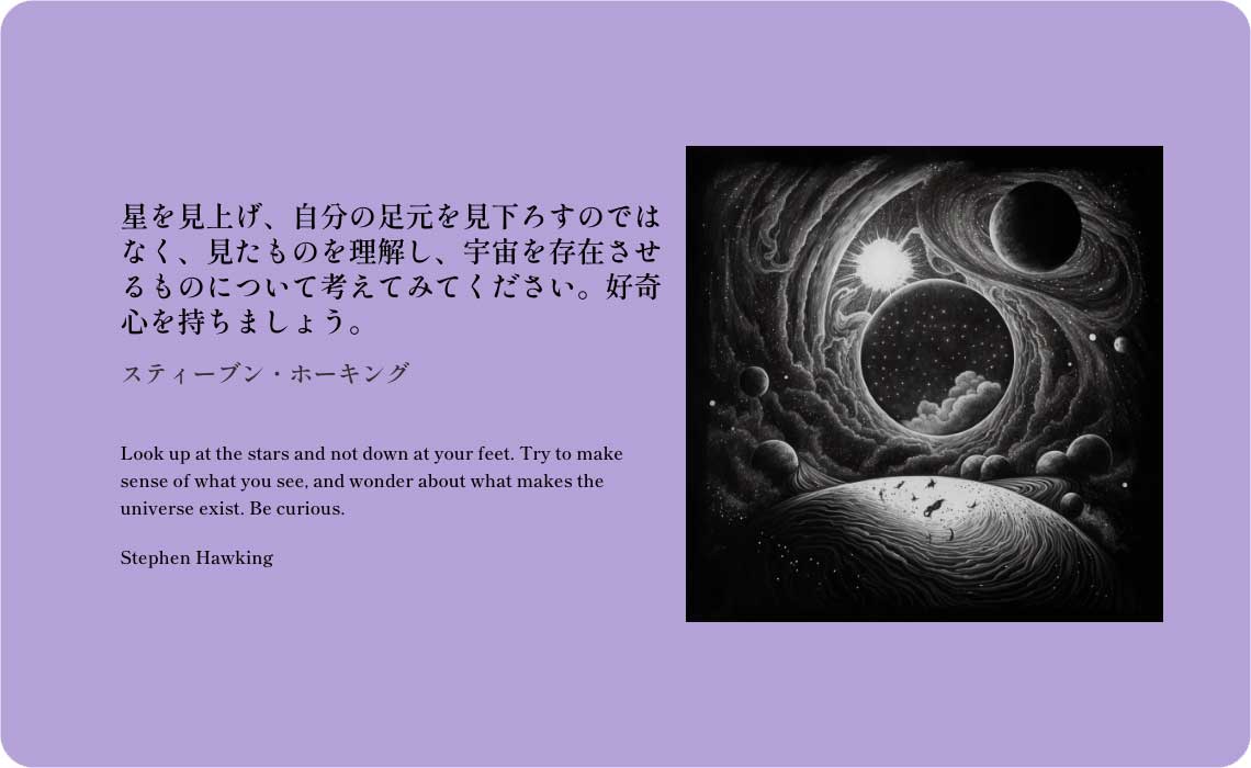 Look up at the stars and not down at your feet. Try to make sense of what you see, and wonder about what makes the universe exist. Be curious.