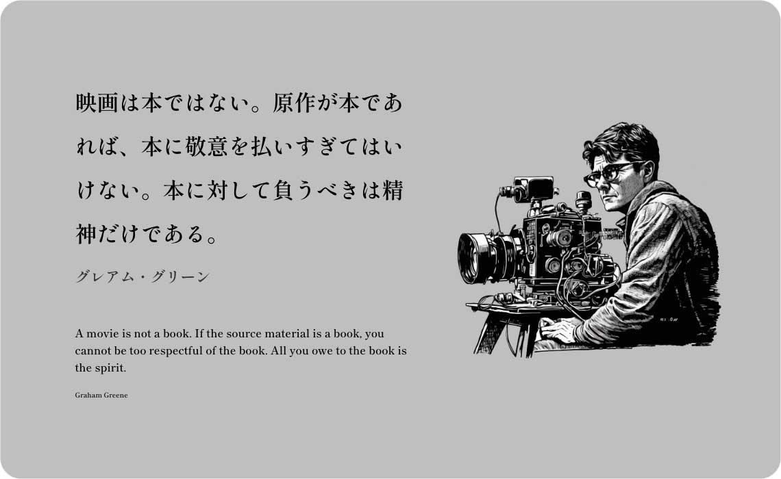 映画は本ではない。原作が本であれば、本に敬意を払いすぎてはいけない。本に対して負うべきは精神だけである。