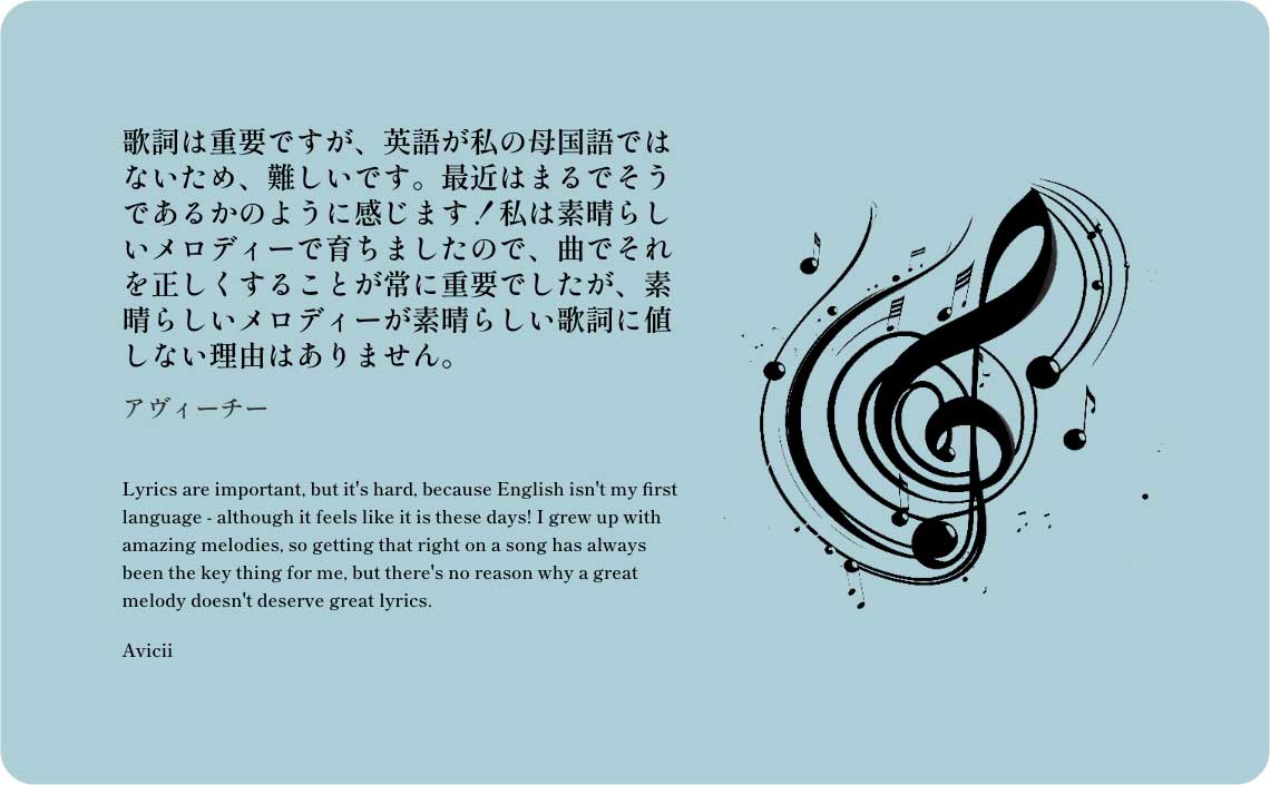 歌詞は重要ですが、英語が私の母国語ではないため、難しいです。最近はまるでそうであるかのように感じます!私は素晴らしいメロディーで育ちましたので、曲でそれを正しくすることが常に重要でしたが、素晴らしいメロディーが素晴らしい歌詞に値しない理由はありません。