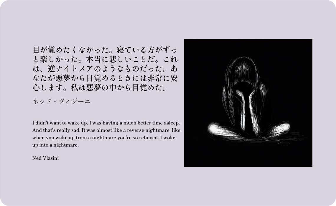 目が覚めたくなかった。寝ている方がずっと楽しかった。本当に悲しいことだ。これは、逆ナイトメアのようなものだった。あなたが悪夢から目覚めるときには非常に安心します。私は悪夢の中から目覚めた。