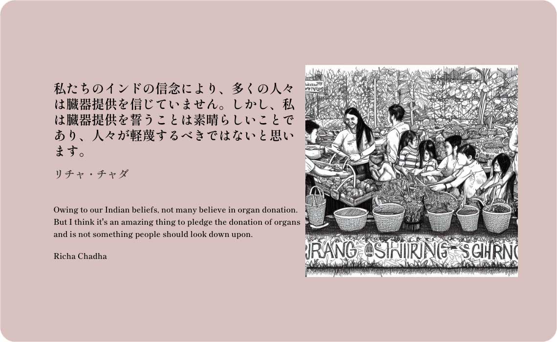 私たちのインドの信念により、多くの人々は臓器提供を信じていません。しかし、私は臓器提供を誓うことは素晴らしいことであり、人々が軽蔑するべきではないと思います。