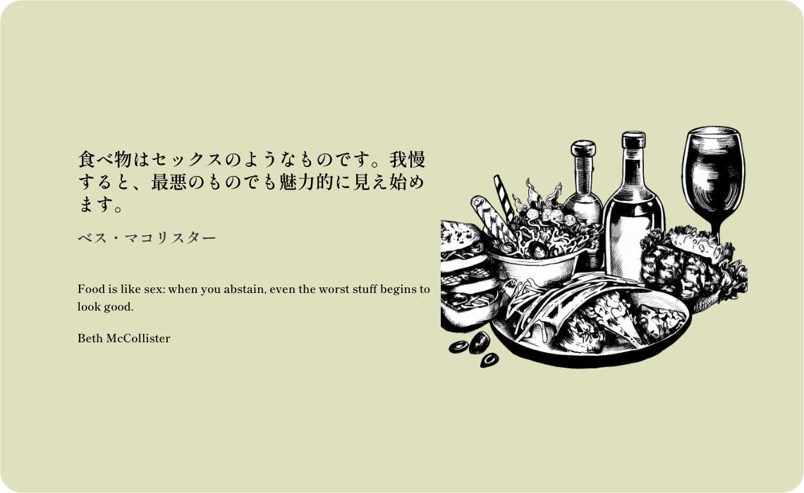 Food is like sex: when you abstain, even the worst stuff begins to look good.