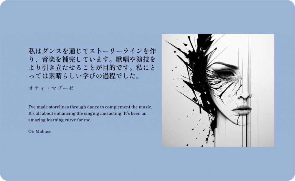 私はダンスを通じてストーリーラインを作り、音楽を補完しています。歌唱や演技をより引き立たせることが目的です。私にとっては素晴らしい学びの過程でした。 Add Your Heading Text Here